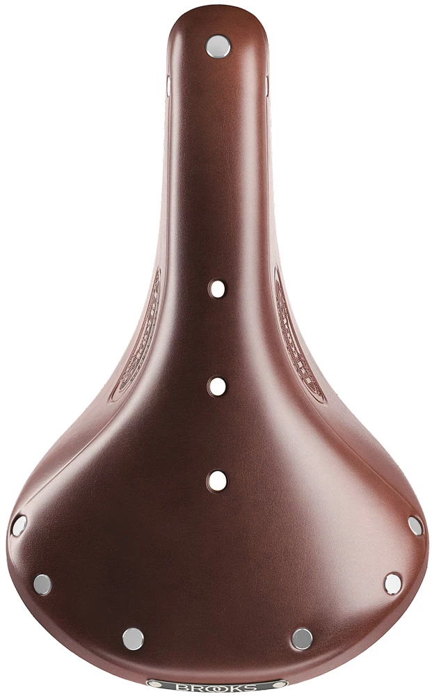 - Le logo emblématique de Brooks orne la plaque arrière et le gaufrage des deux côtés de la selle