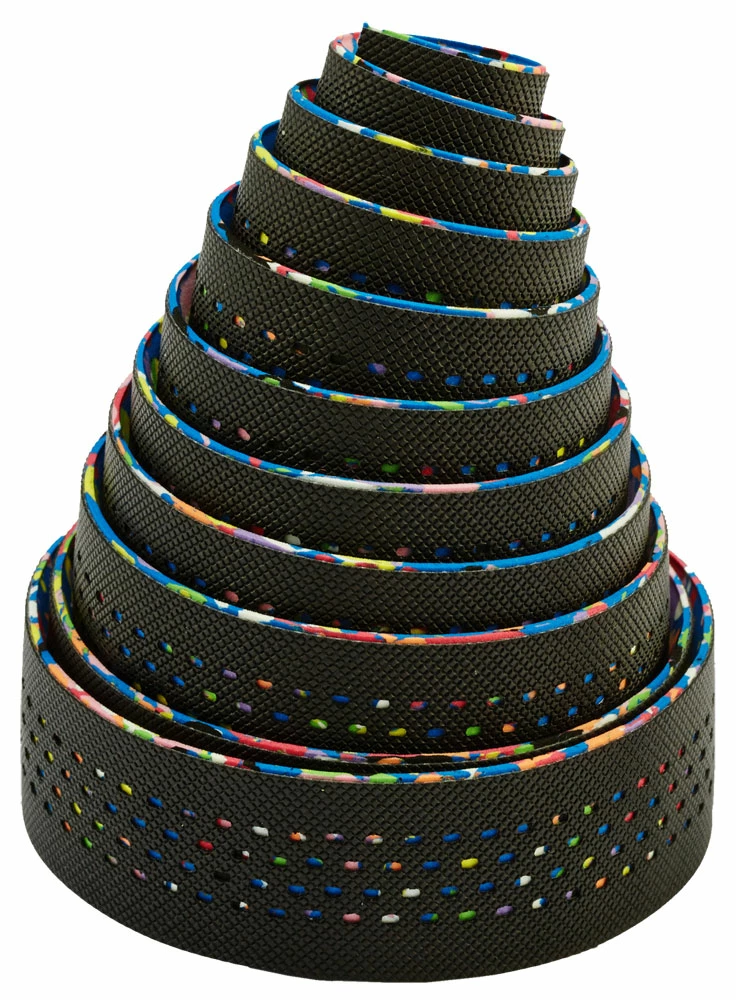 La surface 3D double densité éprouvée de Cinelli a été combinée avec un rembourrage EVA pour un amortissement parfait sur le ruban de guidon Caleido Ribbon. La surface perforée laisse subtilement transparaître les couleurs de l’arc-en-ciel.
