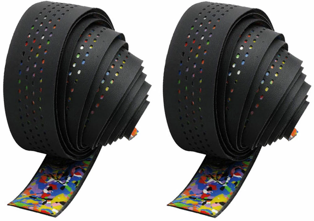 Le Caleido de Cinelli est un ruban de guidon au look éco-cuir qui séduit par son rembourrage confortable en EVA et son amortissement des vibrations. La surface perforée agit comme une fenêtre sur un arc-en-ciel coloré vu d’en bas !