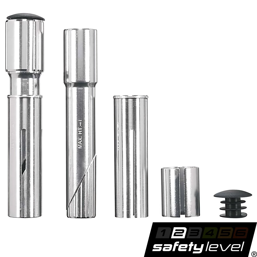 Avec ce kit d’adaptation d’Ergotec, tu peux monter des potences Ahead sur des vélos équipés de jeux de direction filetés. Convient aux tiges et aux potences de 1″ et 1 1/8″.