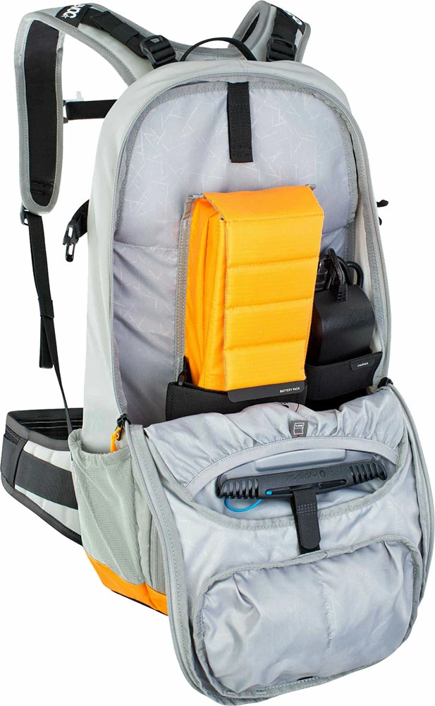 L’EVOC FR ENDURO E-Ride combine un volume de 16 litres avec une protection dorsale Liteshield intégrée qui offre une protection maximale contre les impacts et un système de transport spécial. Le sac à dos protecteur offre suffisamment d’espace pour avoir toujours assez d’énergie avec vous, même sur les itinéraires éloignés, et pour être prêt à tout grâce à un compartiment séparé pour la batterie et l’écran de contrôle ainsi qu’un système de fixation pour le chargeur.