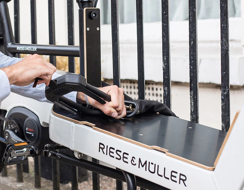 La combinaison d’un antivol à étrier et d’une chaîne robuste à œillets qualifie l’E-DX d’Hiplok pour la protection antivol des précieux cargo bikes et e-bikes.