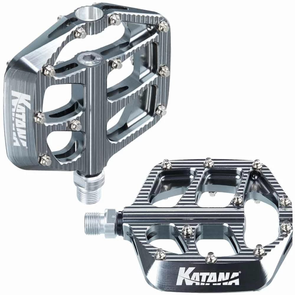 Les pédales Katana Attack Mode Flat, légères et robustes, utilisent un châssis en aluminium usiné et offrent un contact optimal avec ton vélo grâce à leurs 10 pins Evo par côté de pédale et à leur surface de contact légèrement concave. Le corps de pédale CNC et l’axe en CrMo traité garantissent, en combinaison avec les bushings industriels autolubrifiants de LSL, une longue durée de vie dans tous les domaines d’utilisation, même dans les conditions les plus difficiles. Règle le mode Attack !