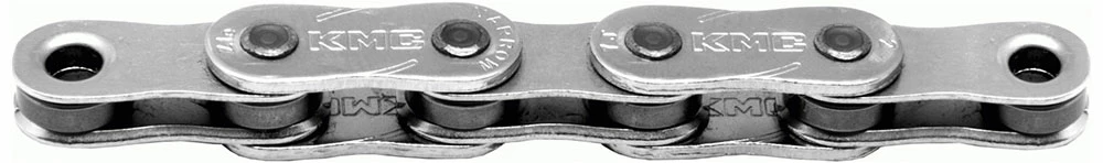 La chaîne Z1eHX Narrow Singlespeed de KMC avec une surface nickelée pour le BMX, le système de moyeu à vitesses intégrées et d’autres systèmes à vitesse unique qui nécessitent une transmission de puissance directe.