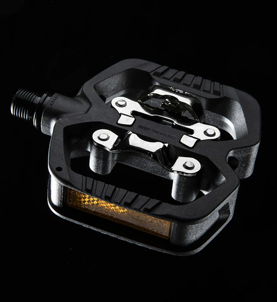 GEO-Trekking est la nouvelle pédale hybride de LOOK, conçue pour une utilisation polyvalente. La pédale peut être utilisée aussi bien avec des chaussures à pédales plates qu’avec des chaussures à clic équipées des crampons X-TRACK Easy compatibles SPD. Que ce soit pour les pendulaires, les cyclistes urbains ou les aventuriers, les nouvelles pédales GEO-Trekking conviennent à de nombreuses utilisations.