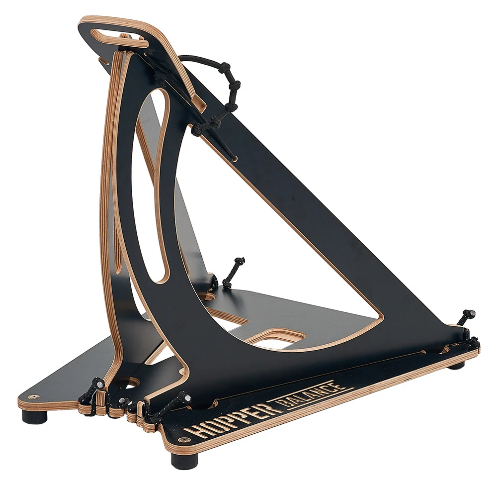L’entraîneur d’équilibre de MTB Hopper vous aide à perfectionner de manière ludique votre équilibre sur la roue arrière et à développer une meilleure sensation de votre vélo sans crainte de vous blesser. Pendant l’entraînement, l’entraîneur à l’équilibre se déplace légèrement sur le côté pour simuler l’équilibre avec vos jambes dans la vie réelle. À la maison, il peut être soit complètement replié pour gagner de la place, soit utilisé comme un support à vélo pratique.