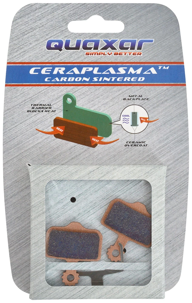 Les plaquettes de disque CeraPlasma sont un procédé breveté de pulvérisation d’un matériau céramique fondu ou ramolli par la chaleur sur une plaque arrière en métal afin de créer une barrière thermique ou un isolant pour empêcher la chaleur de se transmettre aux composants de l’étrier. Il ajoute une couche de céramique qui protège contre la corrosion.