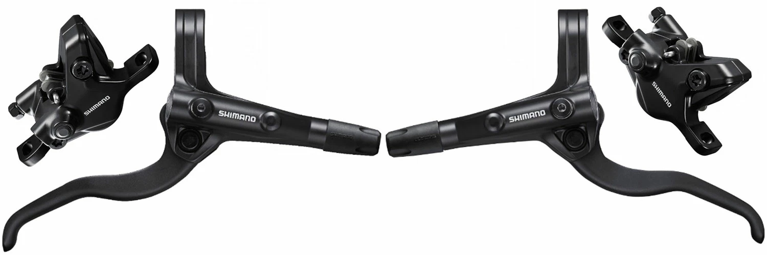 Le frein à disque hydraulique à 2 pistons de Shimano, avec son levier de frein ergonomique BL-MT401 à 2 doigts et son étrier BR-MT410 pour des performances de freinage équilibrées, établit la norme des systèmes de freinage performants et abordables.