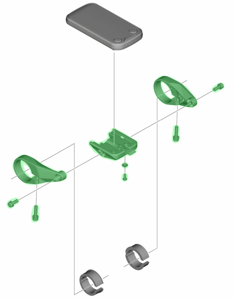 Support d’écran Shimano avec serrage de guidon de 31,6 mm pour les ordinateurs de vélo sans fil STEPS SC-E6100 et SC-E6010.