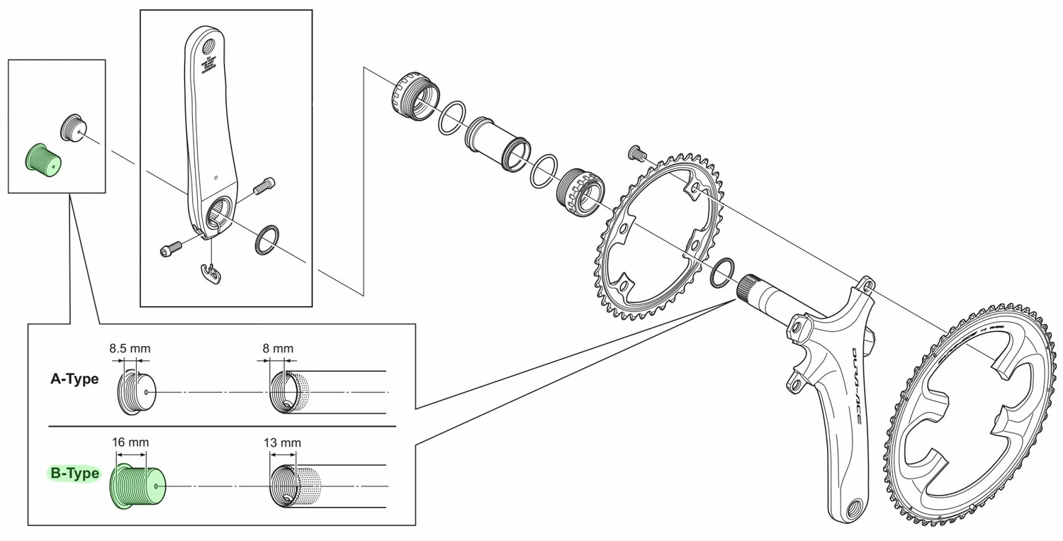 - 1 x Shimano FC-7900/FC-9000 vis de fixation de manivelle A-Type 8.5mm
