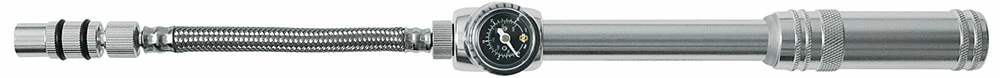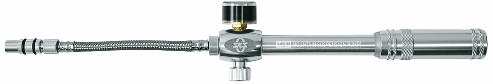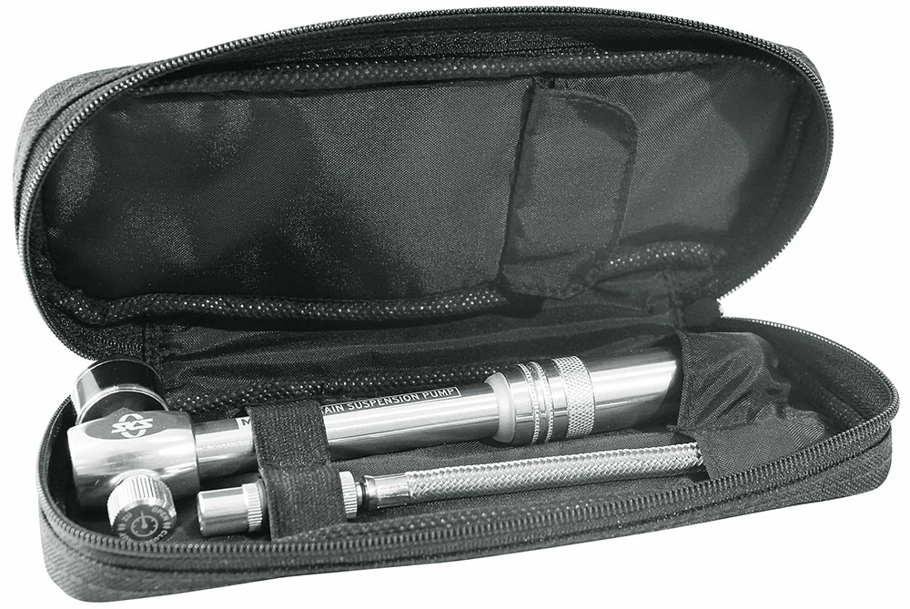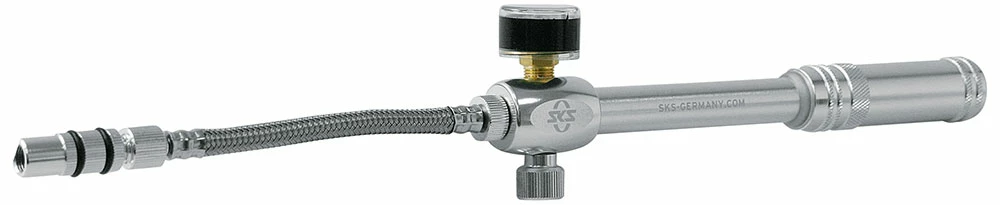 La petite pompe SKS Germany MSP (Mountain Suspension Pump), très maniable, ne devrait manquer dans aucun sac à dos de randonnée. Le tuyau flexible en acier dévissable permet de réduire l’encombrement au minimum. La pression maximale est de 20 bars. Le raccordement AV se fait par un vissage en deux étapes qui permet de visser et de dévisser sans perte de pression. La molette de décompression intégrée permet de régler de manière optimale la pression dans l’élément de suspension.