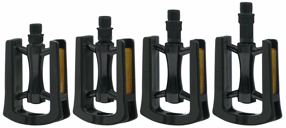 Ces pédales sont rarement utilisées, mais elles ont toujours leur place. L’axe court est adapté aux cyclistes avec une petite taille qui peuvent courir sur une position de pied parallèle. Le facteur Q est donc plus faible. Surtout en combinaison avec une distance entre les os du siège et une largeur de hanche plus étroite, il est judicieux de se tenir debout avec les pieds aussi proches que possible.