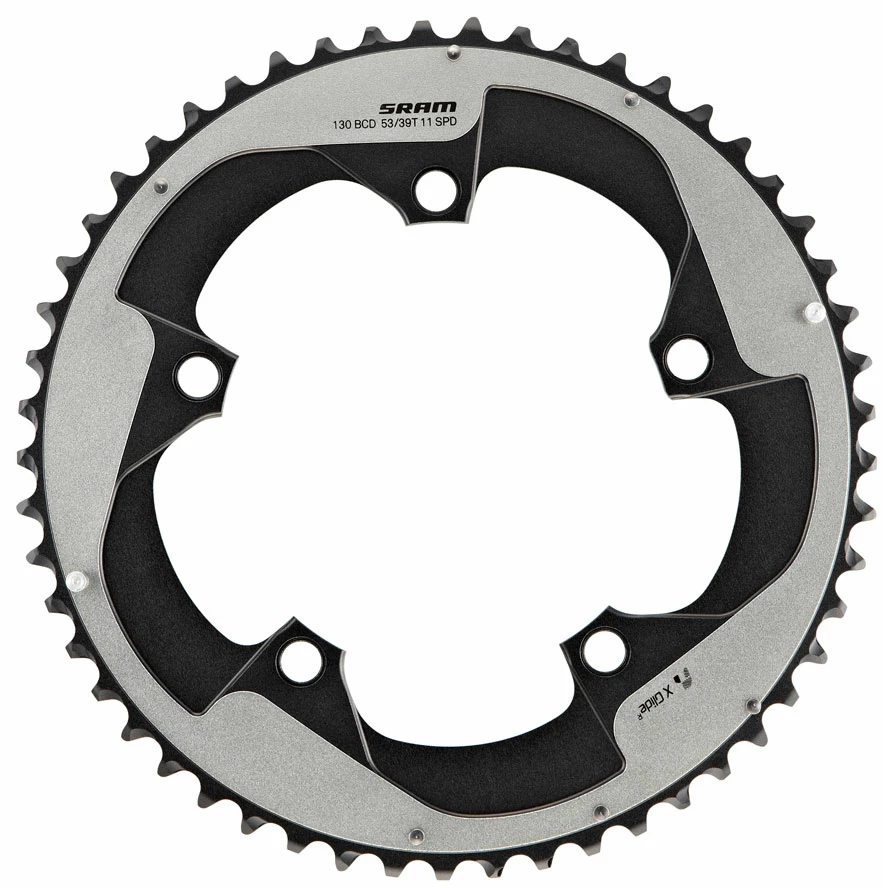 Plateau SRAM Red22 avec 53 dents et un cercle de trous de 130mm.