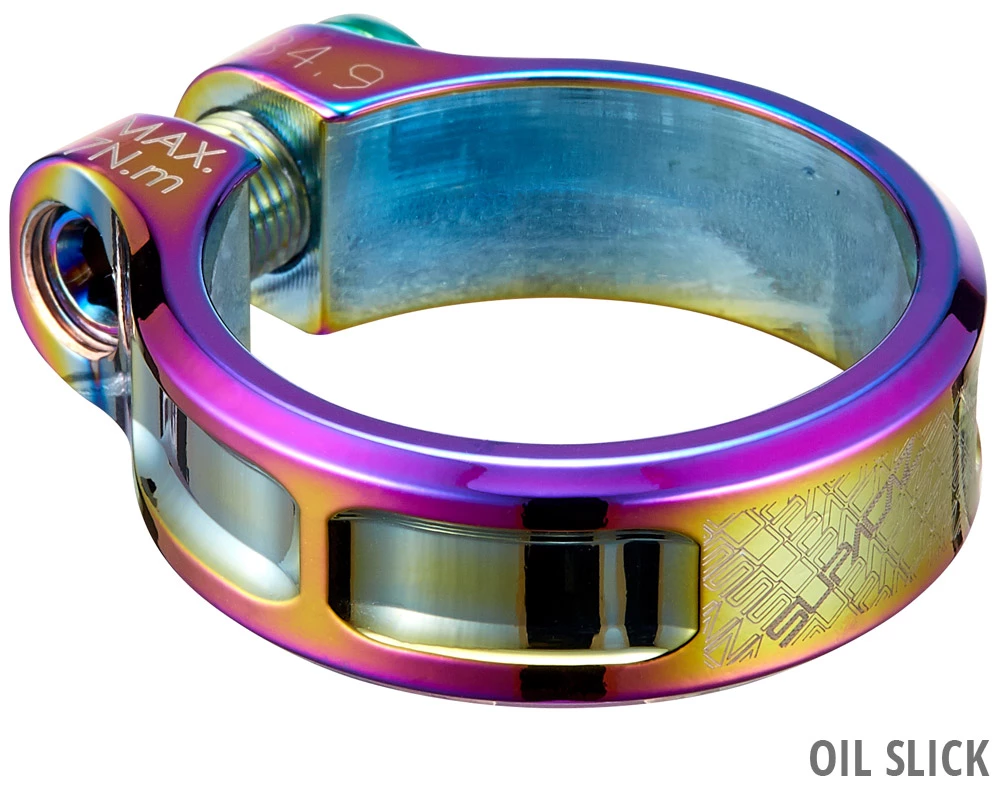 Le SupaClamp de SUPACAZ est un collier de selle anodisé super léger en aluminium forgé avec une finition de première qualité et un graphisme au laser.