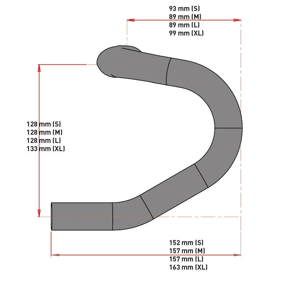 - Compact Drop and Reach : la courbure réduite du guidon permet une position assise plus compacte et facilite la préhension des leviers de vitesses et de freins ; le drop plus faible permet d’atteindre plus facilement le guidon inférieur