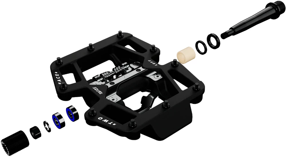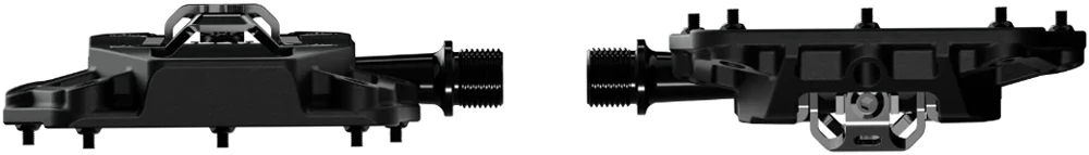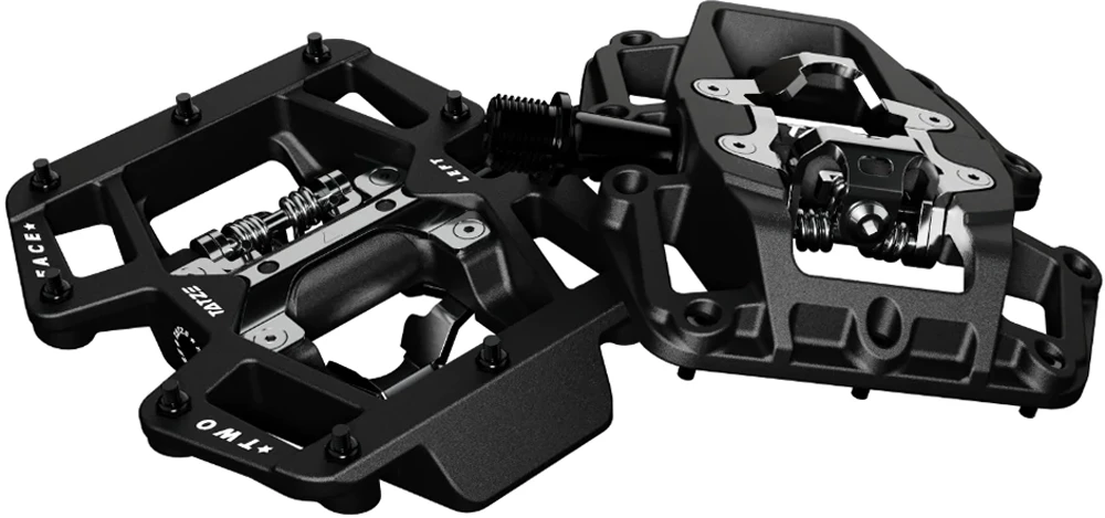 La TWO-FACE Composite de Tatze est à la fois une pédale flat extrêmement puissante et une pédale click efficace. 10 PINs avec une surélévation ciblée assurent une adhérence énorme, mais aussi du côté du clic, de grandes surfaces d’appui créent une liaison particulièrement riche entre la pédale et la chaussure.