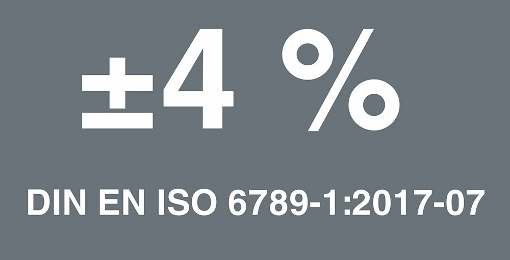 - La précision est de ±4 % selon la DIN EN ISO 6789-1:2017-07