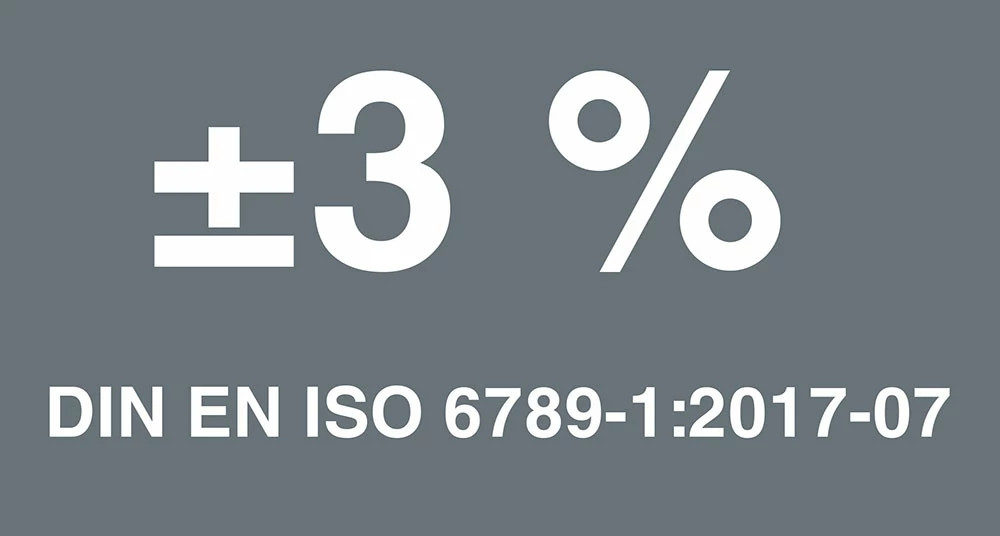 La précision est de ±3 % selon la DIN EN ISO 6789-1:2017-07.